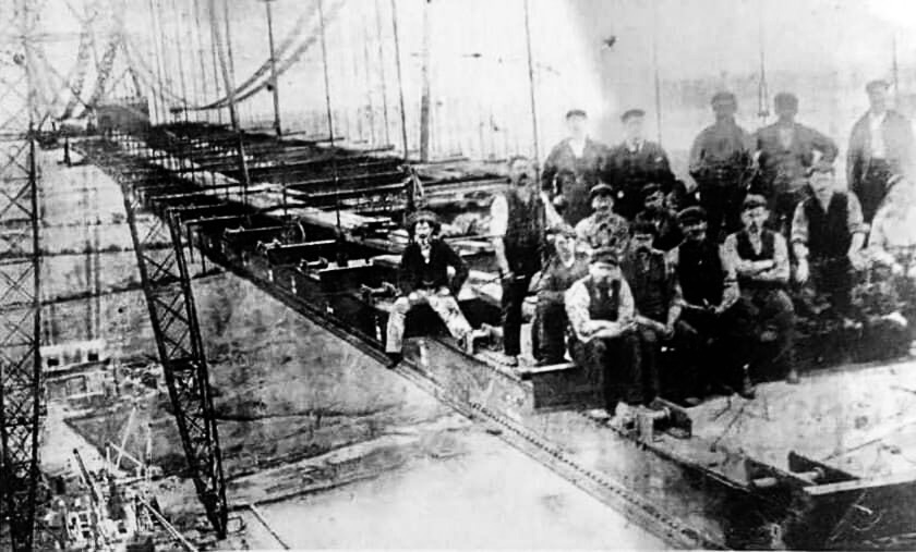 Finally, this wonderful photo in the visitor exhibition dates from c. 1905 of the construction workers taking a break on the top deck of the bridge. They had nerves of steel in those days!