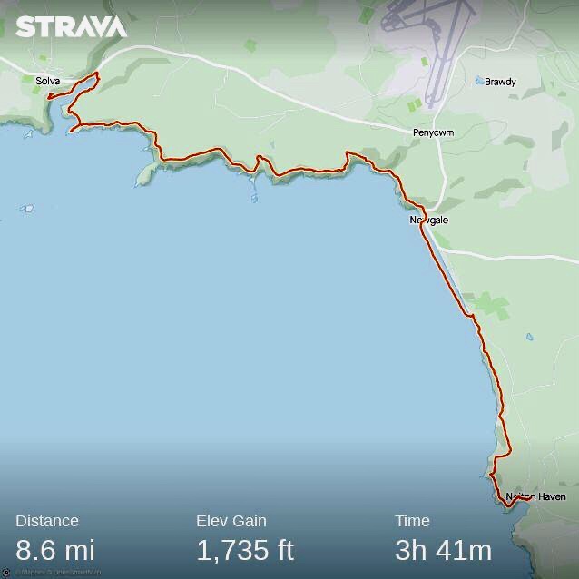 This walk starts at the car park just across the road to Nolton Haven beach, joining the coast path to Solva Harbour, a distance of just over 8 miles.